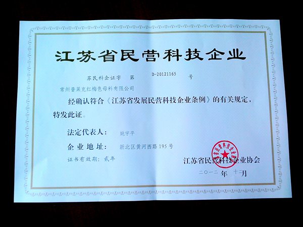 2012年12月經(jīng)相關(guān)部門(mén)評(píng)審,我司獲得“江蘇省民營(yíng)科技企業(yè)”稱(chēng)號(hào)