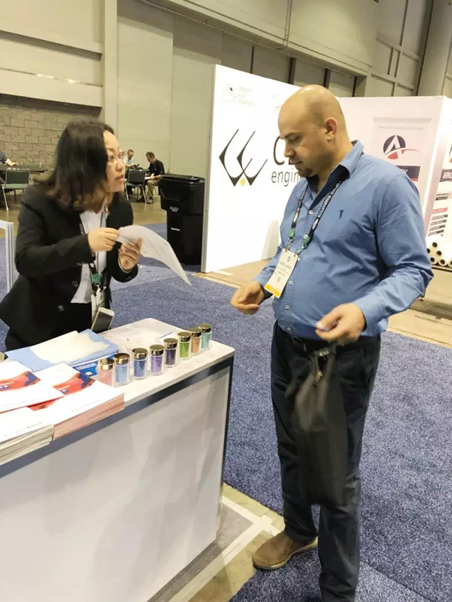 ▲ 專業熱情的紅梅人,在美國塑料展盡心為客戶解讀產品訊息